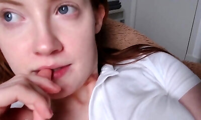 Brunette Teen jack on sofa