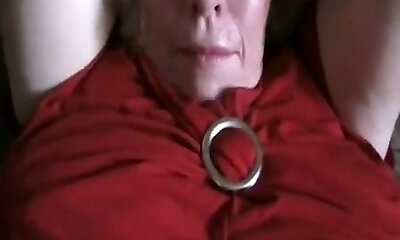 Insatiable, blonde granny is frolicking with her tits and her lovers shaft, in the kitchen