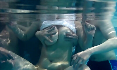 Russian swimmer Lina Mercury and her girlfriend show underwater striptease
