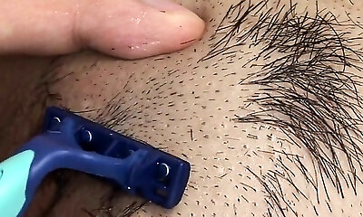 Shaving her pussy and urinating