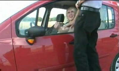 迷人的蜂蜜克劳迪娅Bavel诱惑的家伙和挑逗他在卡车