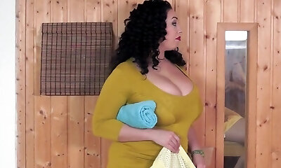 温暖的脂肪排扣盖头MILFie家庭主妇凯莉金斯顿是骨狗很好