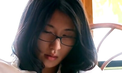 可爱的丰满的亚洲女友fngers在眼镜